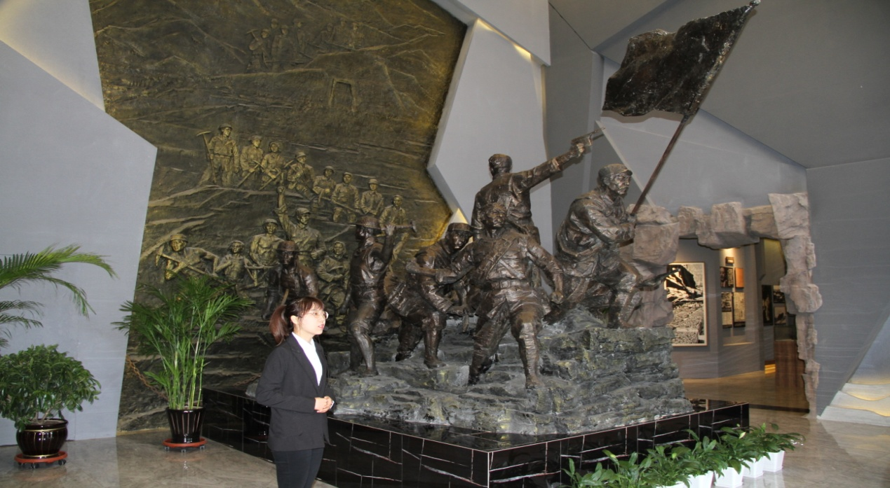 “在各位正前方是銅鑄塑像,塑像下方的基座,高約580毫米,象征著日本侵略者在石人礦區(qū)掠奪優(yōu)質(zhì)煤炭高達580多萬噸,而這其中包含著多少礦工的血淚和寶貴的生命……”紀念館講解員用低沉的語音帶領(lǐng)大家穿越歷史長河,重溫那段悲情歲月。